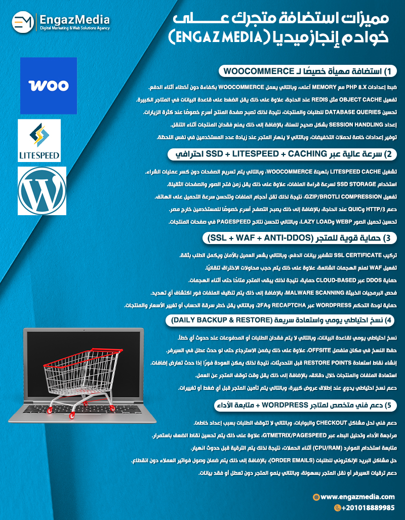مميزات استضافة متجرك على خوادم إنجاز ميديا (Engaz Media)