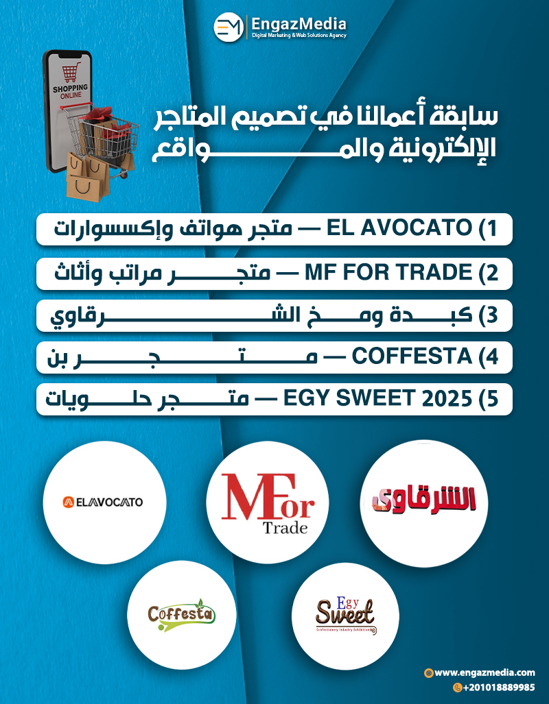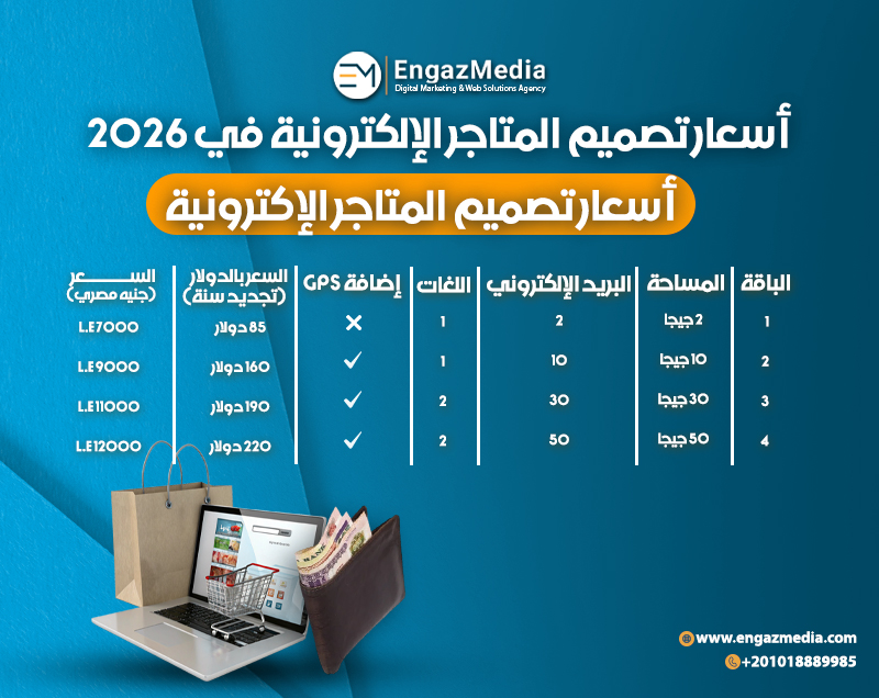 لذلك تقدم إنجاز ميديا (Engaz Media) باقات واضحة تناسب احتياجات المشاريع الصغيرة والمتوسطة والمؤسسات، علاوة على ذلك فإن أسعار المتاجر الإلكترونية أدناه تُعد استرشادية وليست ثابتة، إذ تتغير حسب مجال العميل (ملابس – إلكترونيات – خدمات – حجز)، ومتطلبات السوق في مصر أو الخليج، وحجم المتجر وعدد المنتجات والصفحات والوظائف المطلوبة.